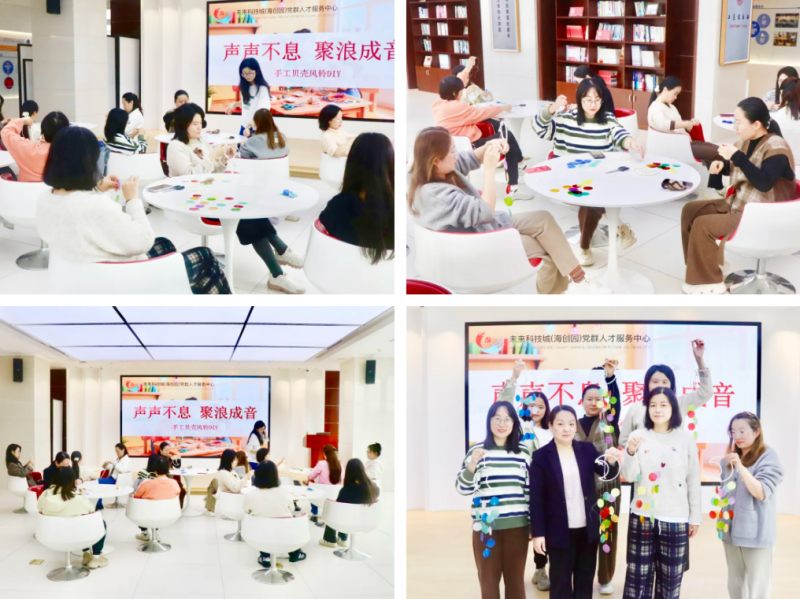11月3日,海创园党群空间的 “声声不息·聚浪成音”贝壳风铃DIY活动,用创意手作装点社区生活空间。贝壳风铃DIY活动现场