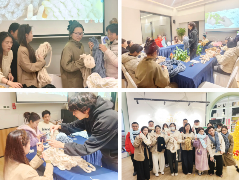 12月17日,云·巢党群服务中心的“指尖温度·暖愈秋冬”编织活动,让毛线在钩针与棒针间穿梭,参与者们在相互请教针法的轻声细语中,共同编织出一份专注而温暖的时光。“指尖温度·暖愈秋冬”编织活动现场