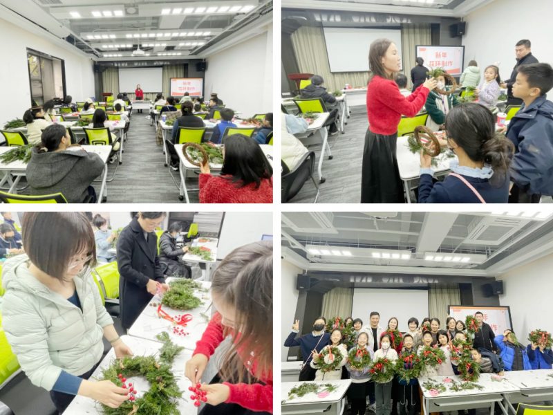 12月20日,在文新青创空间,“匠”人系列之新年花环制作活动则充满了迎接未来的喜悦。参与者们从松枝、松果等一堆自然材料开始,发挥巧思,缠绕捆扎,最终让一个个独具匠心、散发着清香的精美花环在手中诞生,成为装点门扉、预示新年美好的温暖象征。新年花环制作活动现场