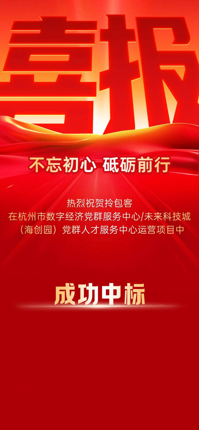 近日,拎包客成功中标杭州市数字经济党群服务中心/未来科技城(海创园)党群人才服务中心运营项目!拎包客将不负所托,用心运营好这一重要的党群与人才服务阵地,为未来科技城区域内的创新创业人才提供更优质的服务与支持。拎包客,成功中标