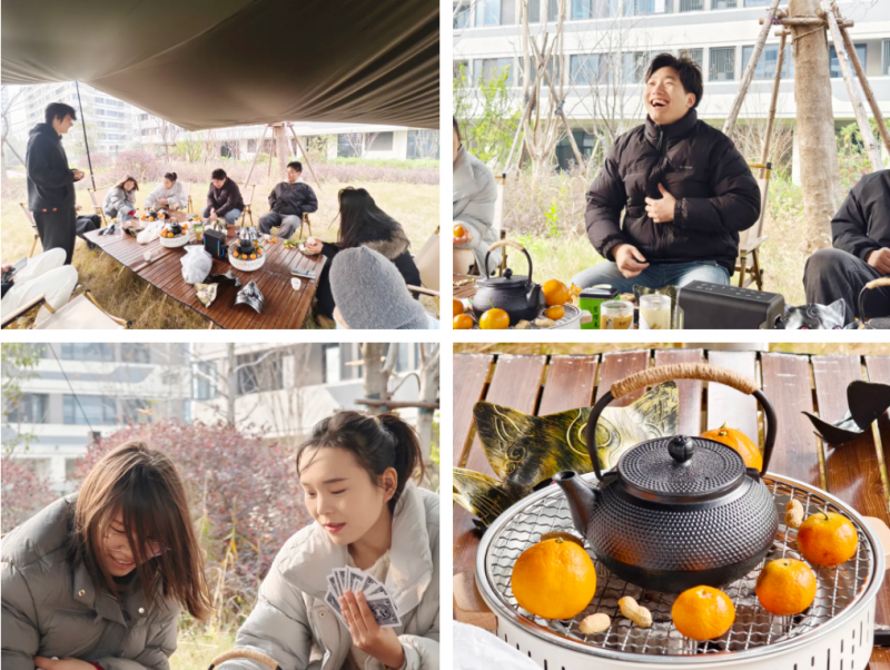 12月20日,在良渚人才社区楼下的大草坪上,“围炉煮茶·桌游趣聚”解锁了冬日户外的另一种可能。沐浴着午后暖阳,青年们围坐桌旁,一边轻煮清茶,一边在策略类桌游中展开智力交锋。欢声笑语随着微风飘散,一个参与活动的青年说:“在户外和大家一起,感觉紧绷的神经都放松了。认识了几个玩得来的朋友,已经约好下次再战了。”“围炉煮茶·桌游趣聚”活动现场